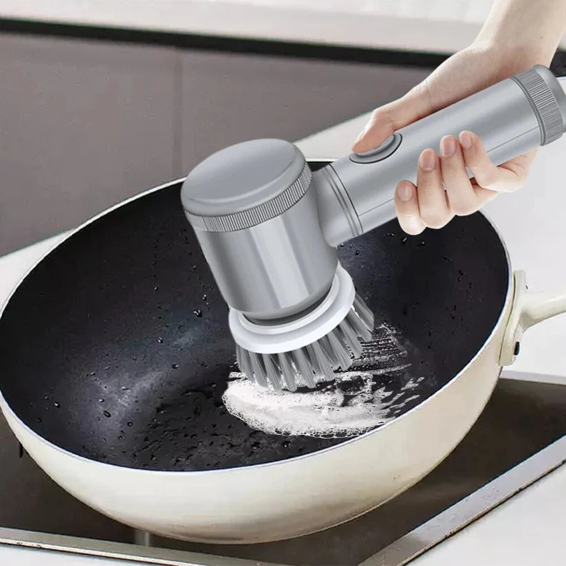 Your kit comes with the cordless scrubber handle, multiple interchangeable brush heads, an extension rod for hard-to-reach areas, a charging cable, and a user manual.